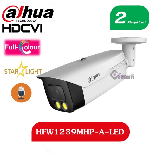 دوربین HFW1239MHP-A-LED به چند دلیل یکی از پرفروشترین دوربین های شرکت داهوا میباشد : 1- ارائه تصویر با کیفیت در ابعاد FullHD 2- دارای میکروفن داخلی بسیار باکیفیت 3- بدنه کاملا فلزی ، بسیار مقاوم در برابر نفوظ آب و ضربه های شدید 4- دید درشب کاملا رنگی قدرتمند که فضای 50 متر مربع را می تواند پوشش دهد 5- استفاده ازسنسور تصویر بسیار قدرتمند با تکنولوژی استارلایت و فول کالر مناسب برای پایش تصویری فضاهای بزرگ و باز